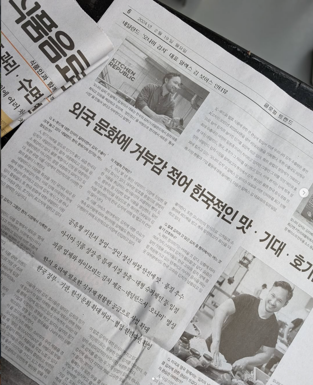 Oh Na Mi Kimchi is based on a traditional Korean family recipe that’s made from fermented Napa Cabbage, a Chinese cabbage variety. Kimchi accompanies practically every meal in Korea, and a meal without it is almost unthinkable! Locally produced in Amsterdam and handmade by the owner himself, our Kimchi is a labour of love.